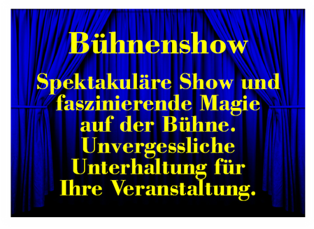 Die ca. 40 Minuten dauernde Show ist der ideale Programmpunkt für alle Anlässe, ob Geburtstage, Vereinsfeiern, Firmenfeste oder andere Festlichkeiten.